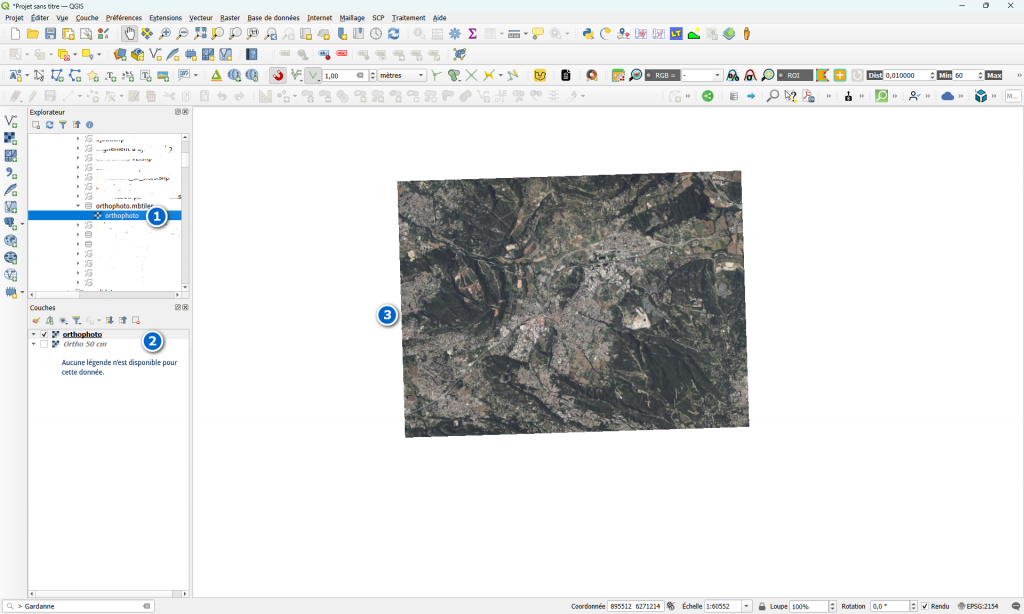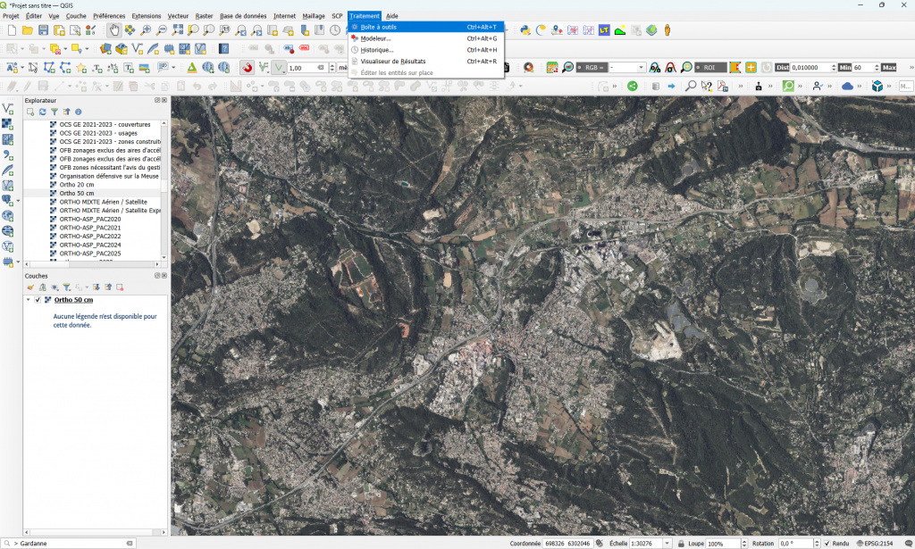 Dézoomer pour vérifier que la zone d’étude est bien couverte