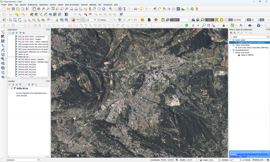 La méthode proposée ici consiste à télécharger une partie du fond proposé par le flux et à l’enregistrer sous forme de tuiles dans un fichier mbtiles.