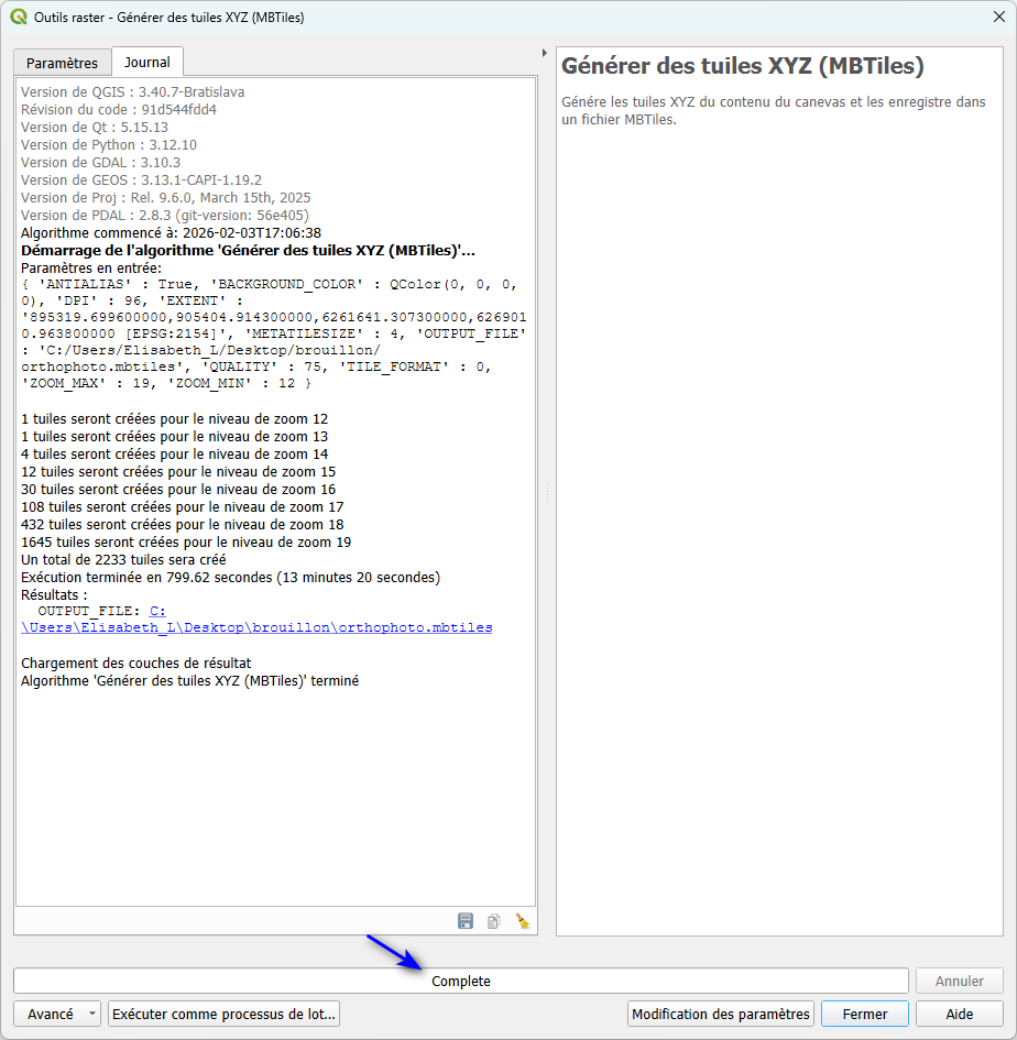 Enregistrer un fichier au format mbtiles, dans lequel les tuiles téléchargées seront enregistrées.